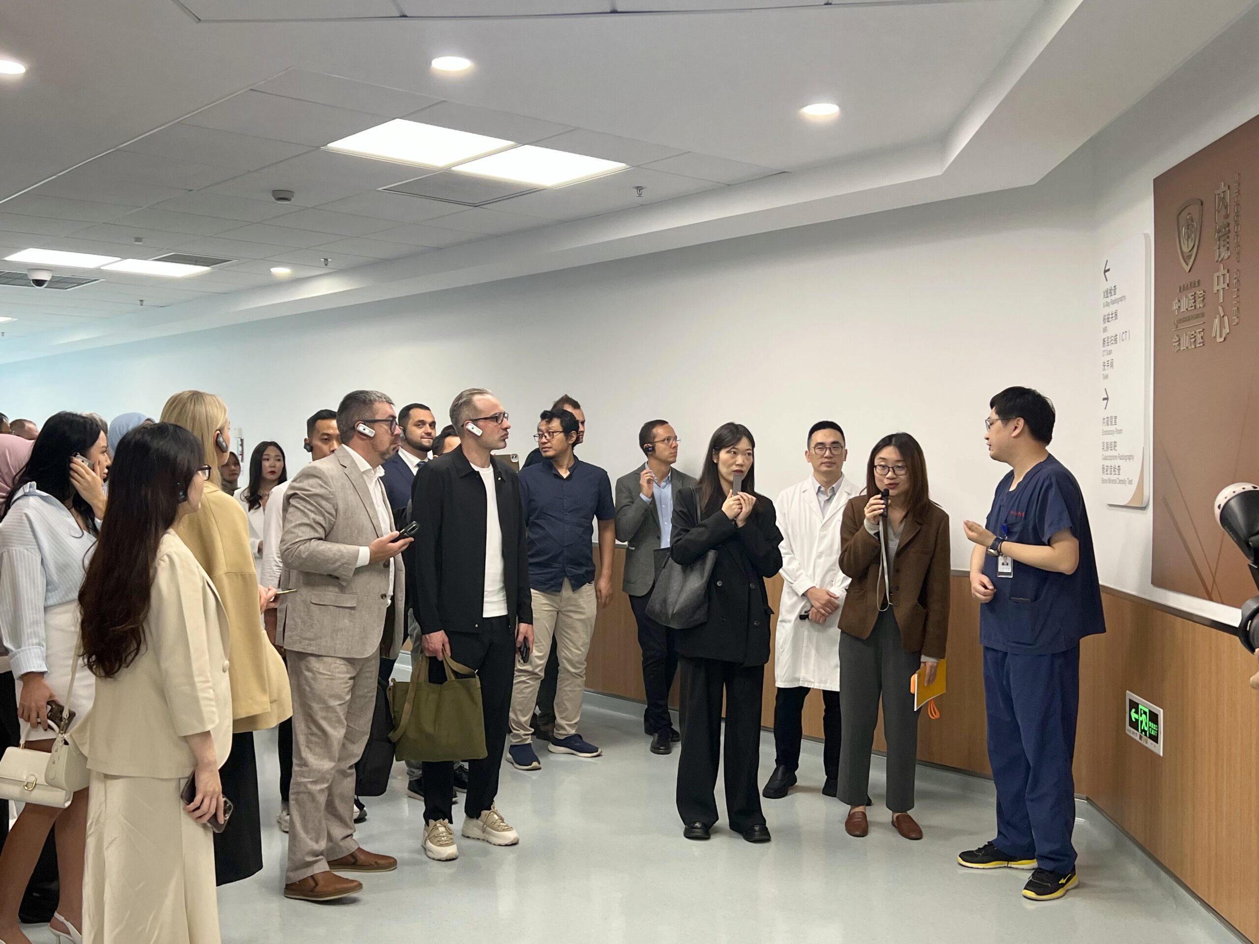 走进佘山院区,嘉宾们首先深入了解了院区的整体规划与的运营理念。在医院讲解团队的引导下,大家实地探访了体检区、内窥镜室、放射诊断区、门诊医疗区等核心功能区,实景演示的全流程服务让嘉宾们频频驻足。