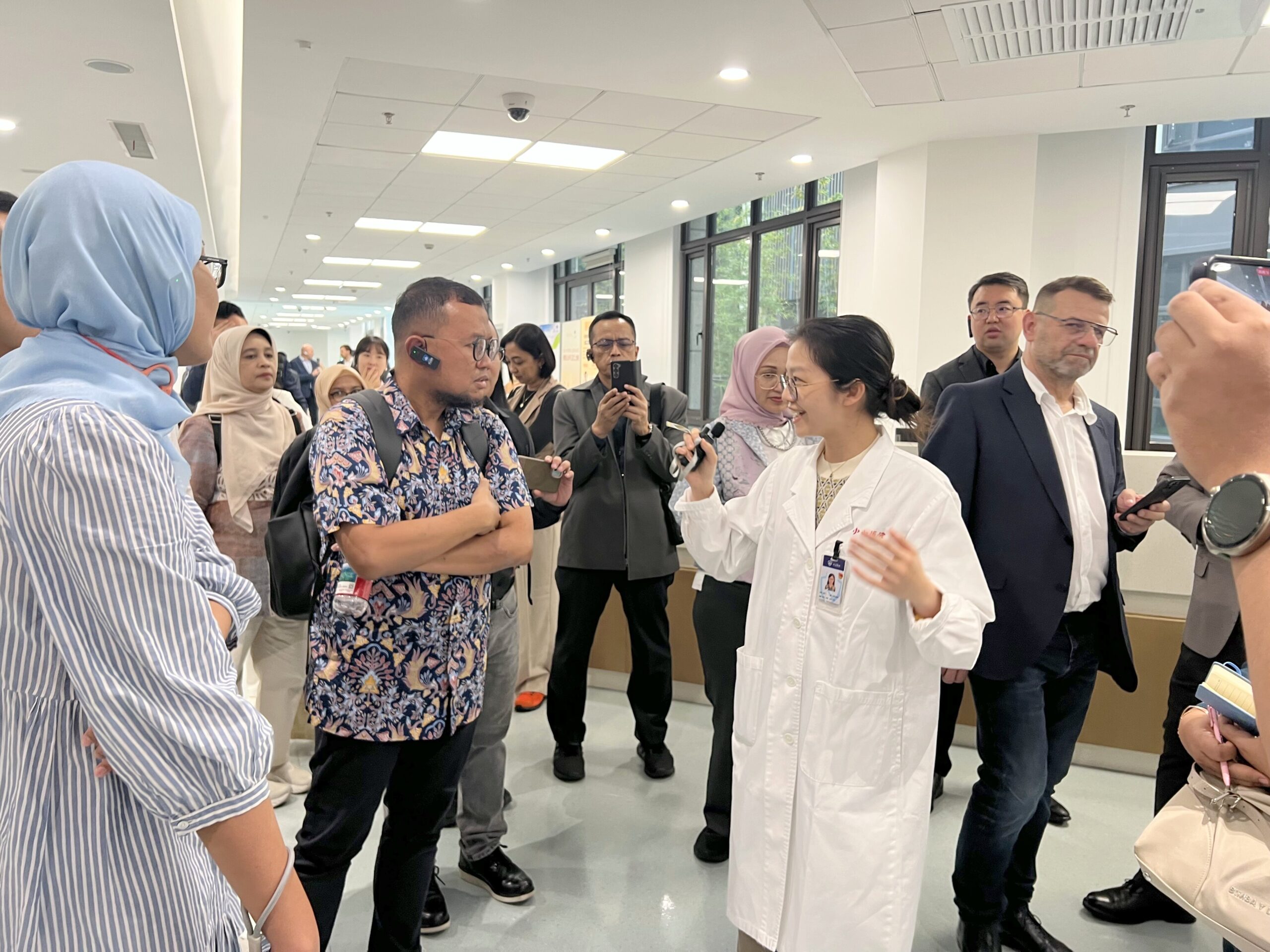 除了硬核的医疗设施,佘山院区兼顾实用性与舒适度的配套服务,也给国际嘉宾留下了深刻印象。在餐饮区,嘉宾们详细了解到,医院中医科、营养科与厨师团队深度协作,以 “药食同源” 和 “营养地中海” 为核心理念,量身定制专属菜单,全力为客人的健康保驾护航。
