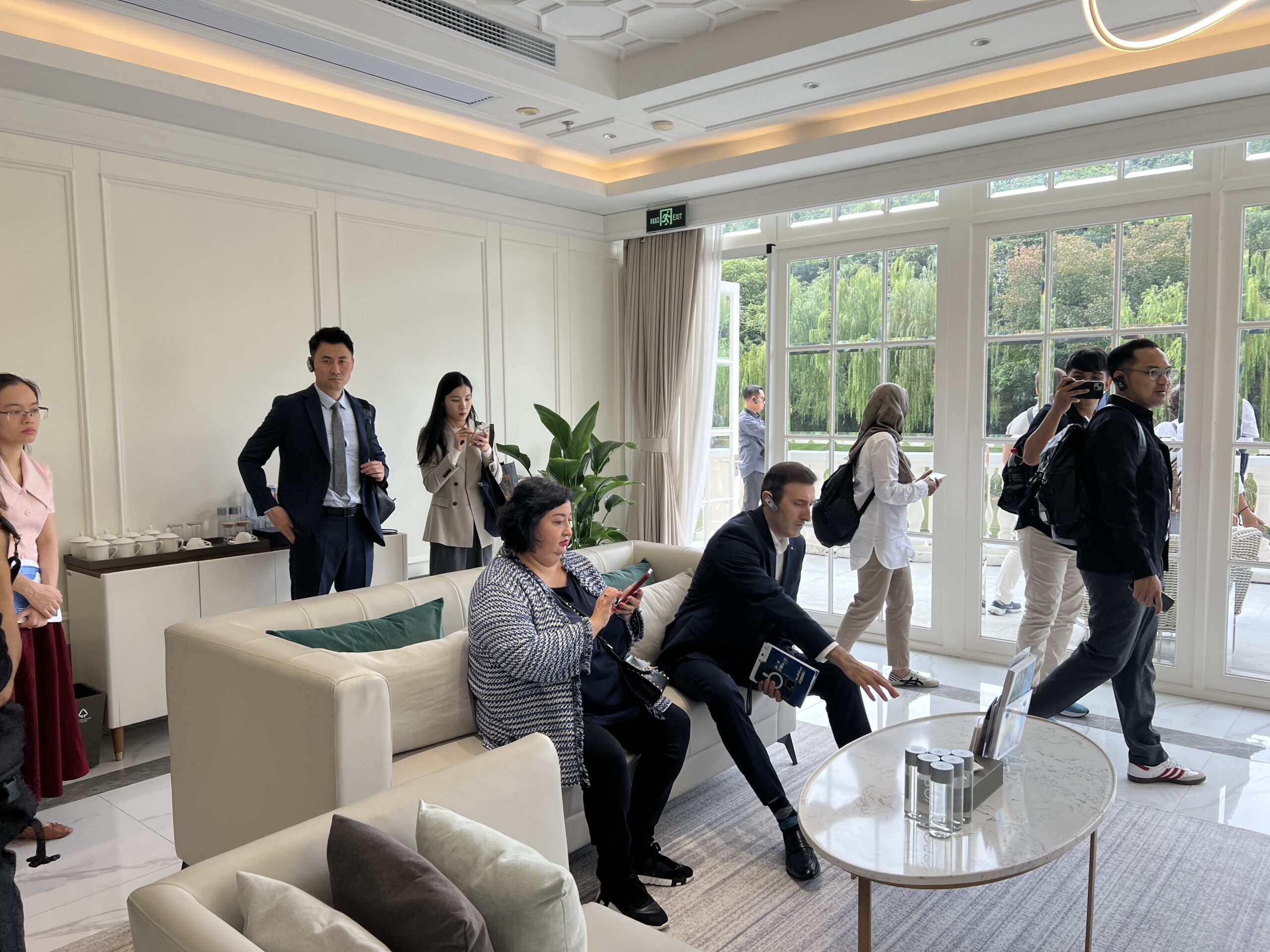 除了硬核的医疗设施,佘山院区兼顾实用性与舒适度的配套服务,也给国际嘉宾留下了深刻印象。在餐饮区,嘉宾们详细了解到,医院中医科、营养科与厨师团队深度协作,以 “药食同源” 和 “营养地中海” 为核心理念,量身定制专属菜单,全力为客人的健康保驾护航。